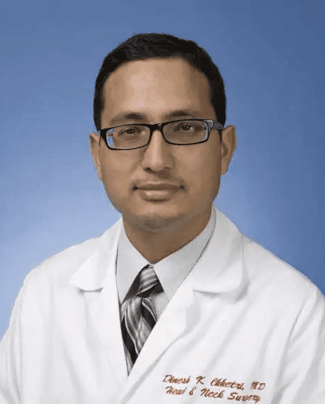 Dr. Dinesh Chhetri طبيب حنجرة متخصص في اضطرابات الصوت، واضطرابات البلع، واضطرابات المجرى الهوائي (التنفس). وهو نائب رئيس قسم جراحة الرأس والرقبة في كلية David Geffen للطب. يشغل منصب مدير برنامج اضطرابات البلع بجامعة UCLA، وبرنامج النجاة من سرطان الرأس والعنق في جامعة UCLA، والمدير المشارك لبرنامج علم أمراض الحنجرة (الصوت). هو طبيب معتمد في الجراحة الروبوتية عبر الفم (TORS) لسرطان الرأس والرقبة. قامت معاهد الصحة الوطنية(NIH) بتمويل أبحاث الدكتور شيتري بانتظام فيما يخص موضوع التحكم العصبي العضلي في الحنجرة