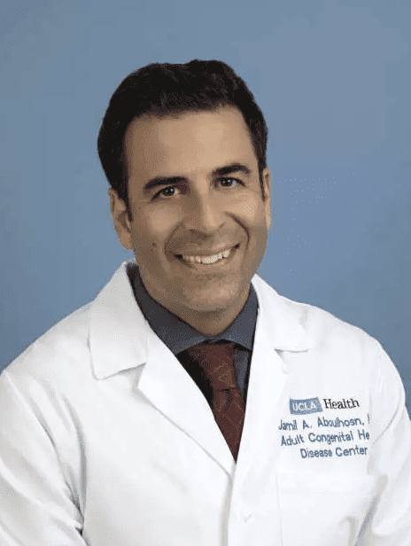 Dr. Jamil Aboulhosn ، دكتور في الطب | يعمل كمدير لمركز Ahmanson/UCLA لأمراض القلب الخلقية لدى البالغين، وهو متخصص في أمراض القلب الخلقية لدى البالغين، وطب القلب التدخلي لأمراض القلب الهيكلية، وأمراض القلب أثناء الحمل. كما أنه عضو في لجنة كتابة التقارير في الكلية الأمريكية لأمراض القلب/إرشادات جمعية القلب الأمريكية حول أمراض القلب الخلقية لدى البالغين، وهو رئيس لجنة امتحانات أمراض القلب الخلقية لدى البالغين في المجلس الأمريكي للطب الباطني(ABIM).يشارك الدكتور Aboulhosn أيضًا بشكل فعّال في معسكر Camp del Corazon، وهو مخيم مجاني للأطفال المصابين بأمراض القلب. كذلك فإن Gala del Sol، وهو الاحتفال السنوي لجمع التبرعات في
